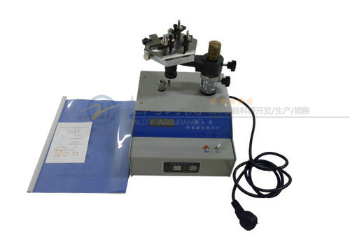 將被檢的表(百分表、千分表、扭簧表、測微表、杠桿表)、光學儀器(光學計管、烏式干涉管)插進六角夾持盤⑼相應的孔內(nèi),并由螺釘鎖緊。轉(zhuǎn)動橫臂及六角夾持盤,使被檢器具的測頭對準儀器受力盤⑽的平面位置,旋轉(zhuǎn)立柱上的升降羅母⑸使被檢表臨近接觸受力盤⑽的平面位置時,即鎖緊定位螺釘⑷及橫臂定向螺釘⑹和六角夾持盤緊固羅母⑿。打開電源開關⑵,按下開機清零按鈕⑴,使顯示窗⑶上的數(shù)字為零。旋轉(zhuǎn)微調(diào)裝置⑻,下降六角夾持盤,使被檢器具測頭與儀器受力盤⑽平面接觸,繼續(xù)調(diào)接微調(diào)裝置,即可測得被檢器具的正反行程上的測力。