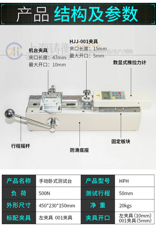 測端子線束拉力測試儀 手動端子拉力檢測儀 臥式端子拉力試驗機(jī):上海鑄衡廠家生產(chǎn)的這款拉力測試儀是我公司針對線束及電子行業(yè)研制開發(fā)的一種檢測設(shè)備,該款端子線束拉力測試儀用于檢測各種線束接線端子的拉脫力?膳渲脭(shù)顯、表盤推拉力計和夾具,本儀器具有...